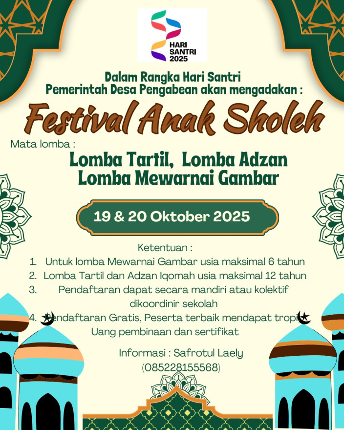 AYOOO IKUTI LOMBA TARTIL AL QUR'AN, LOMBA ADZAN, & LOMBA MEWARNAI DALAM RANGKA HSN 2025 DESA PENGABEAN
